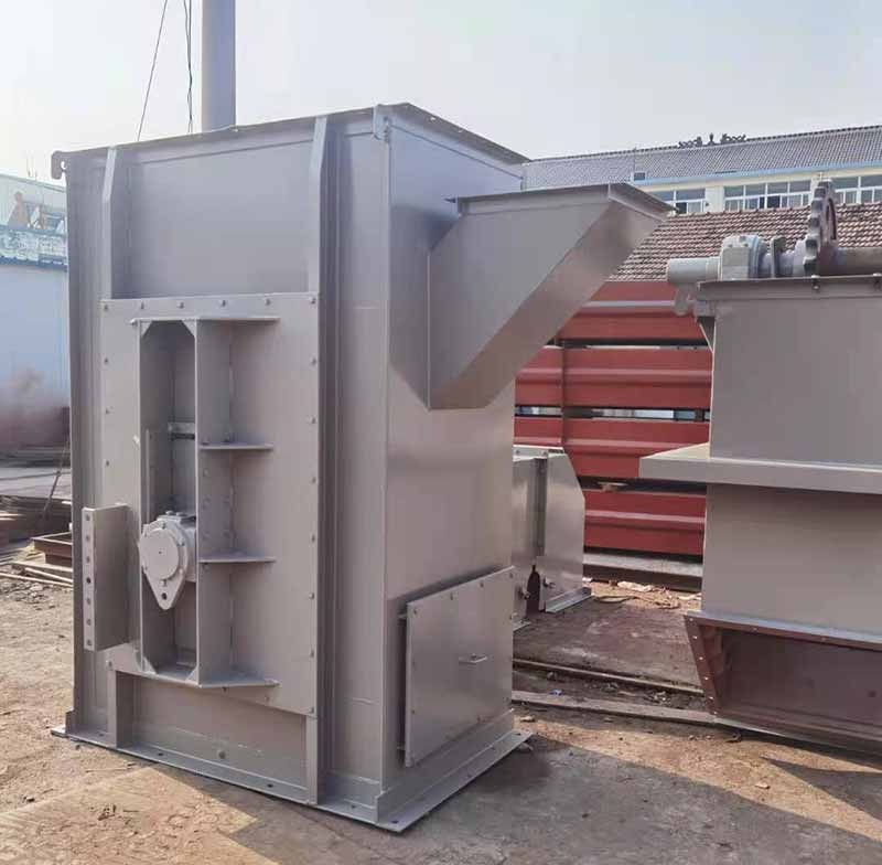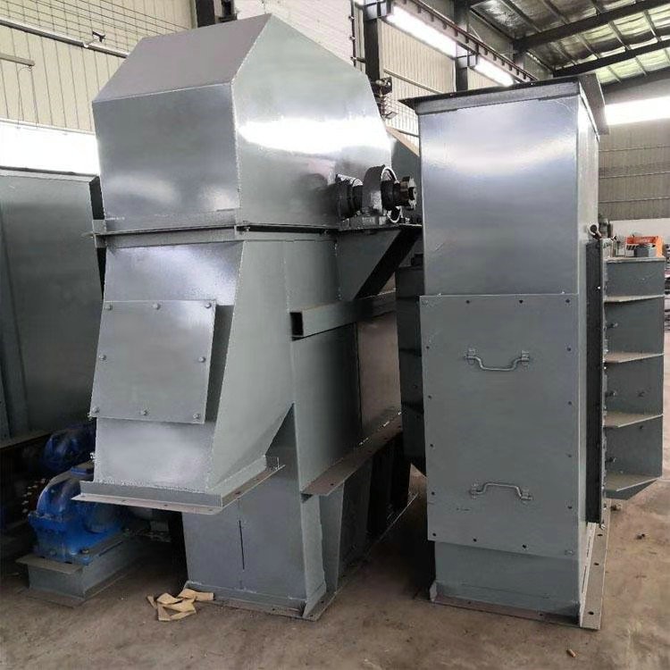 4、提升机的链条及料斗:链条为圆钢焊接环链。料斗用螺母定在链条的接头上。不同高度的斗提机现套相应数量的链条、接头、及料斗。
